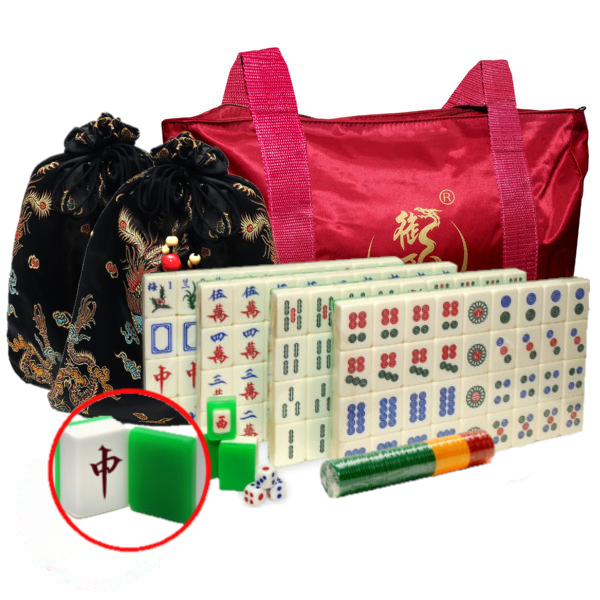 Jumbo Asian Green and White Mahjong Tiles in a charming Tote