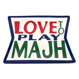 Majh Dish and Spreader is a whimsical conversation starter will make majh night even more fun when serving horderves! “Love to play Mahj” hand painted on top of the dish and on your next spreader that will incitate that passion for Mah jongg games, giving the players that sensation of being in the right place to play this amazing game.