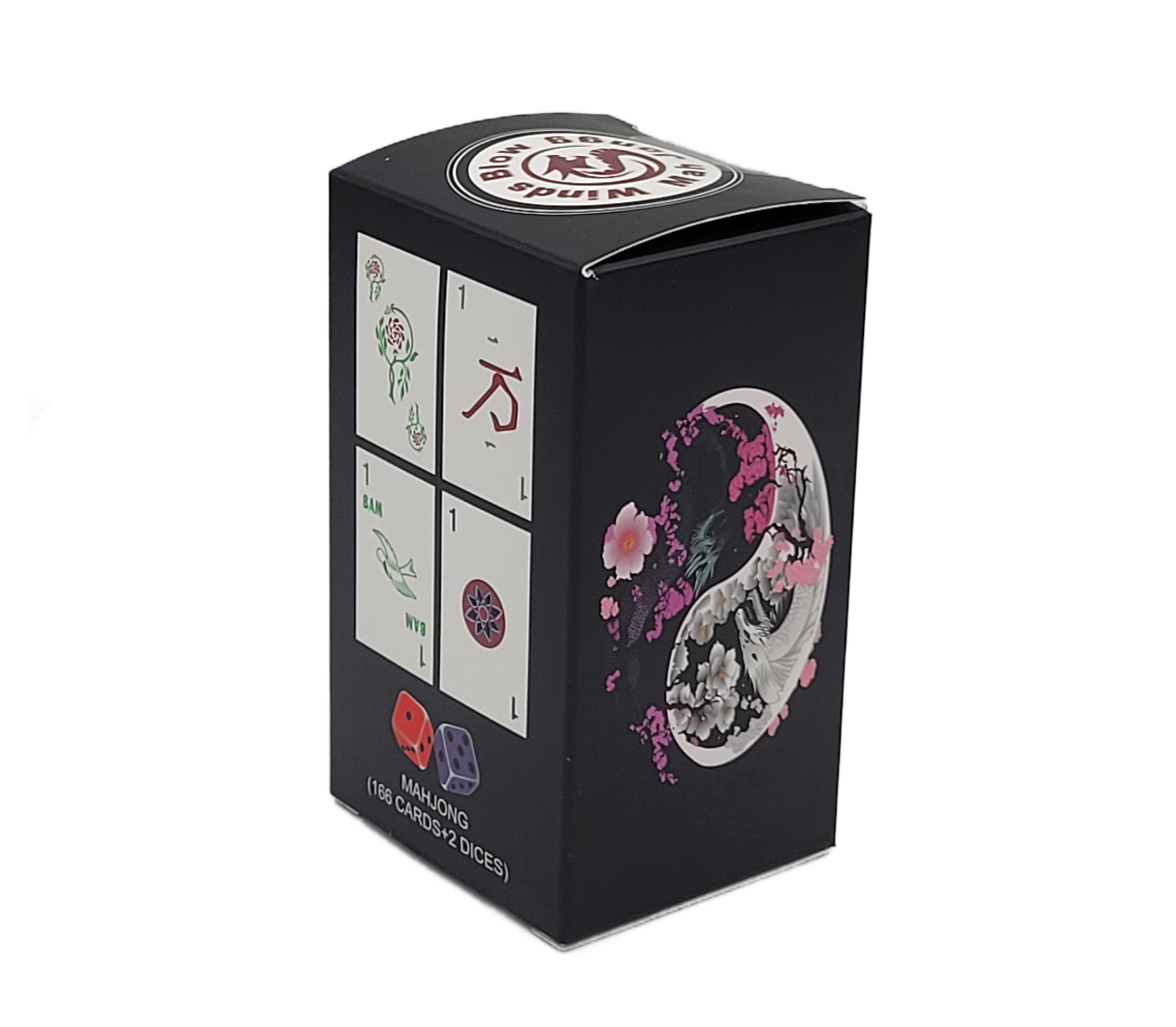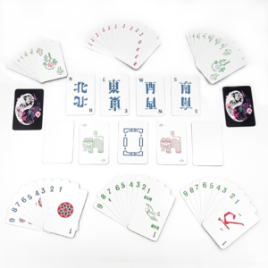 This standard American Mah Jongg Waterproof Deck of Cards includes a total of 166 cards – with all necessary tiles to play, including: Craks, Bams, Dots, Dragons, Winds, 8 Jokers, 8 flowers, 8 seasons, 4 blanks and 2 extra jokers, plus a pair of dice (colors vary for the dice).